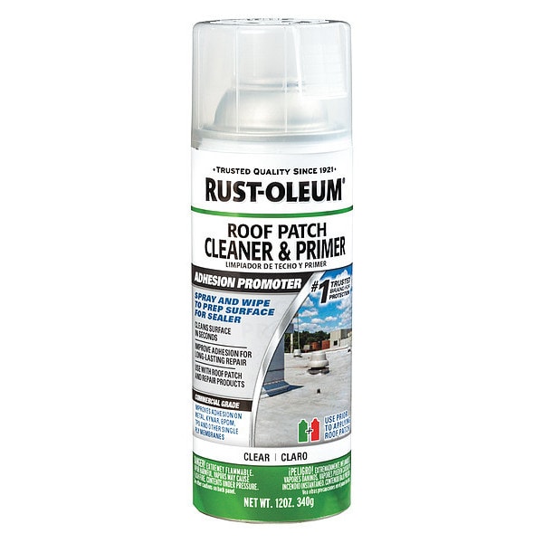 Cleaner and Primer, Base Type Solvent, Resin Type Acrylic, Size 12 oz, Clear, Finish Unfinished, Coverage 50 sq ft/gal, Dry Time 1 hr, Dry Time Recoat 10 min, VOC Content 642 g/L, Surface Aluminum, Concrete, Metal, Modified Bitumen, Single Ply Roofing, Application Temperature 40 Degrees to 120 Degrees F, For Use With Roof Patch and Repair Sealants