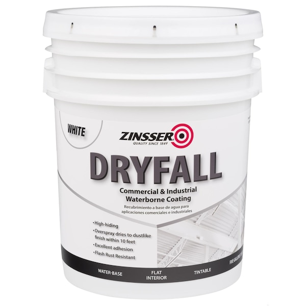 Dryfall Commercial & Industrial Waterborne Coating, White, Flat, 5 Gallon