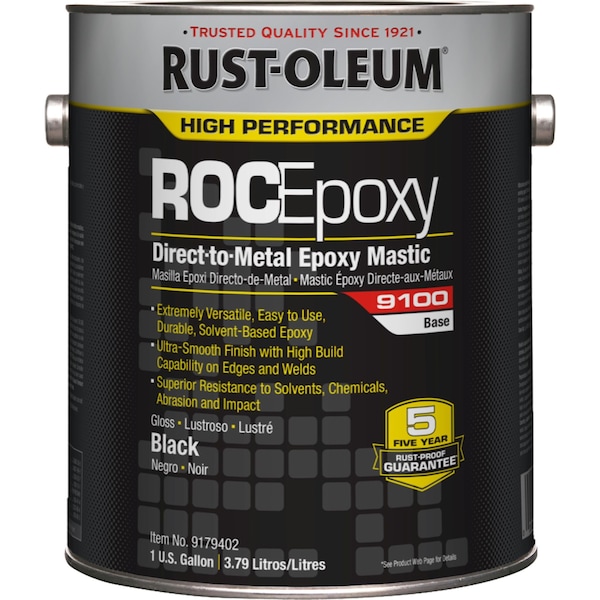 Epoxy Mastic Coating Base, Base Type Solvent, Resin Type Epoxy Mastic, Color Black, Finish Semi-Gloss, Size 1 gal, VOC Content 225 g/L, Coverage 130 to 220 sq ft/gal, Exposure Conditions Moderate to Severe, Dry Time Varies, Cure Time Depends On Activator, Application Temperature 50 Degrees to 100 Degrees F, For Use With 9100 or V9100 System Activators, Activator Properties Fast Cure Activator, Immersion Activator, Low Temperature Activator, Standard Activator, System Series 9100