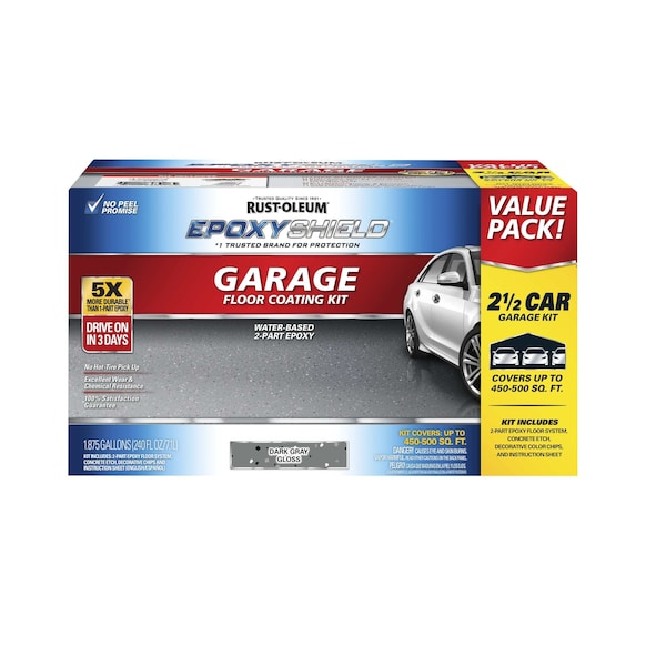 EpoxyShield Garage Floor Coating, Dark Gray, Gloss, 2.5 Car Kit