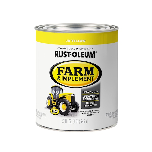 Rust-Oleum Farm & Implement paint provides superior rust protection for tractors, trailers, lawn mowers and other machinery. It offers excellent coverage, chip resistance and color retention. The glossy finish can also be applied to wood for long-lasting color.