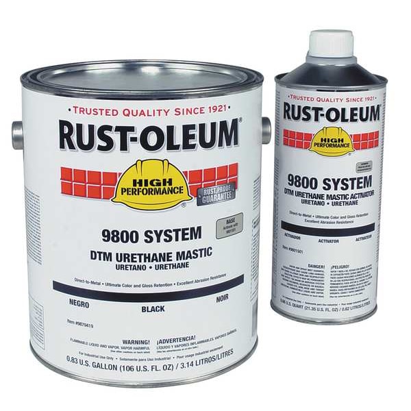 Finish and Activator Kit, 9800 System, Urethane Mastic, Color Black, Urethane Mastic Finish, 1 gal., Application Method Brush, Roll, Spray, Application Temperature 40 to 100 F, Coverage 160 to 280 sq. ft., Dry Time 6 to 9 hr., For Concrete, Metal, Steel, or Galvanized Surfaces, Includes Finish 2NU59 and Activator 4CH84