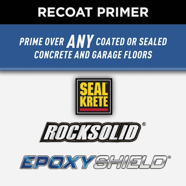 Rust-Oleum Garage and Interior Floor Primer is designed for use over previously coated garage and interior concrete floors. After applying Garage and Concrete Floor Primer the floor is ready to be top coated with any opaque epoxy 2-part epoxy or RockSolid Polycuramine.