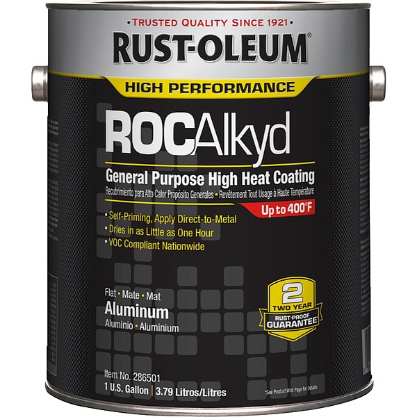 Heat Resistant Coating, Surface Material Metal, Surface Texture Smooth, Use Location Exterior, Interior, Maximum Temperature Resistance 400 Degrees F, Base Type Solvent, Color Aluminum, Coverage Area 250 to 540 sq ft/gal, Container Size 1 gal, Sub Brand High Performance, Dry Time 1 to 2 hr, Cure Time 2 hr, Color Family Aluminum / Metallic, Container Type Can, Application Method Brush, Roller, Spray, Coating Type Heat Resistant Coating, Dry Time to Recoat 8 to 24 hr, Heat Resistant Yes