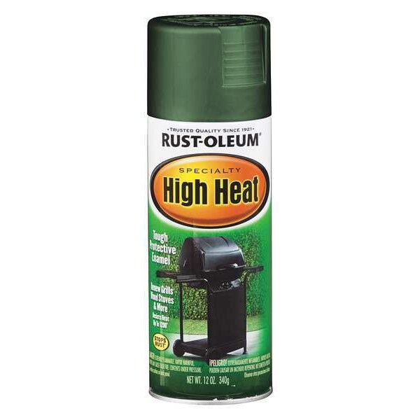 High Heat Coating, Surface Material Metal, Surface Texture Smooth, Use Location Exterior, Interior, Maximum Temperature Resistance 1,200 Degrees F, Base Type Solvent, Color Green, Coverage Area 7 to 8 sq ft/can, Container Size 12 oz, Sub Brand Specialty, Dry Time 1 to 2 hr, Cure Time 1 hr, Color Family Greens, Container Type Aerosol, Application Method Spray, Coating Type Heat Resistant Coating, Dry Time to Recoat Before 1 hr or After 48 hr, Finish Satin
