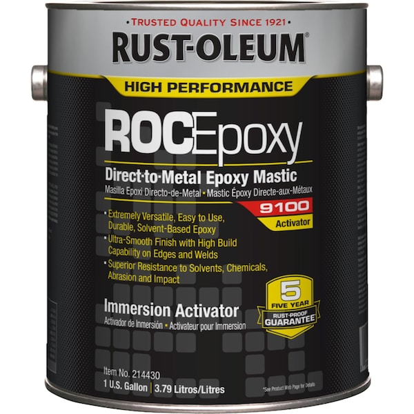 Immersion Epoxy Coating Activator, Base Type Solvent, Resin Type Polyamide Converted Epoxy, Color Clear, Finish Gloss, Size 1 gal, VOC Content 250 g/L, Coverage 100 to 175 sq. ft./gal, Exposure Conditions Interior/Exterior, Dry Time 8 to 14 hr, Cure Time 8 to 14 hr, For Use With 9100 Epoxy Mastic Coatings, Activator Properties Immersion Activator, System Series 9100