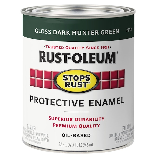 Interior/Exterior Paint, Gloss, Oil Base, Dark Hunter Green, 1 qt
