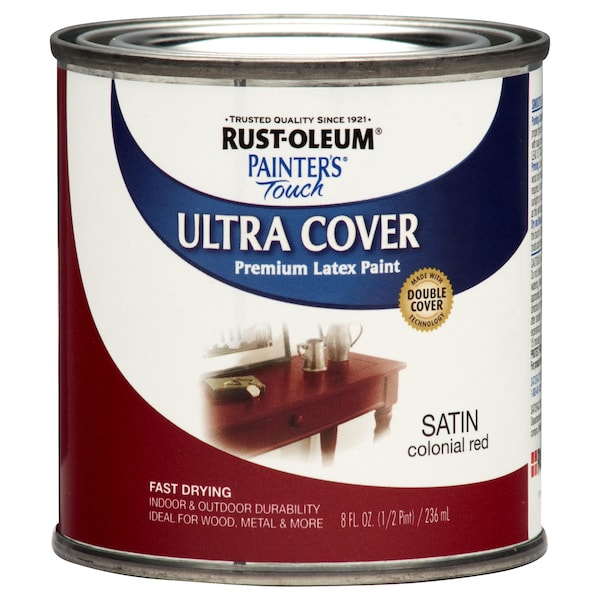 Interior/Exterior Paint, Satin, Colonial Red, 1/2 Pint