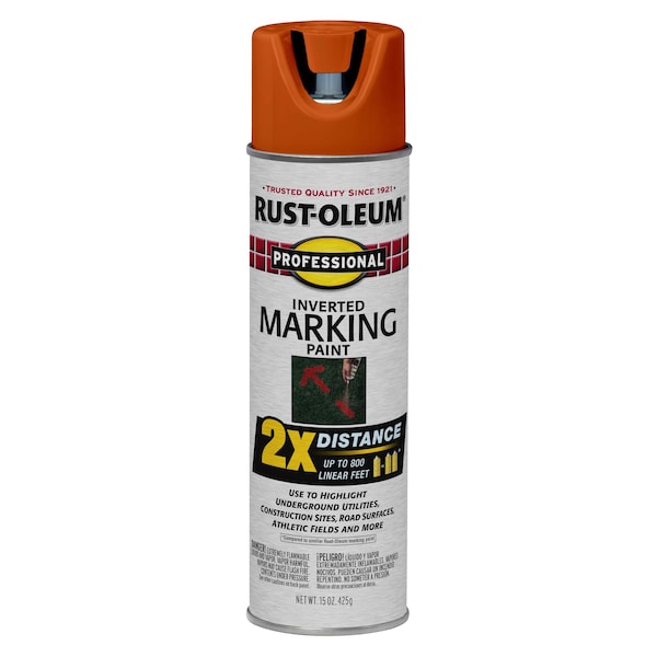 Professional 2X Inverted Marking Spray Paint, Fluorescent Red-Orange, 15 Ounce