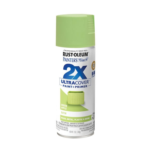 Painter's Touch 2X Ultra Cover Spray Paint, Green Apple, Satin, Solvent, 12 Oz