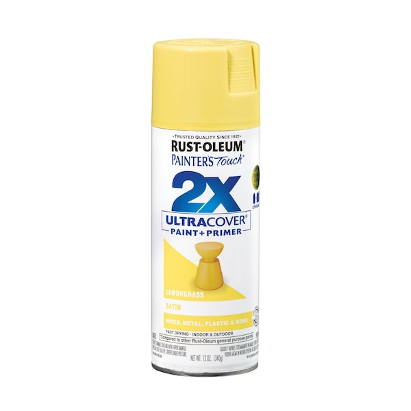 Painter's Touch 2X Ultra Cover Spray Paint, Lemongrass, Satin, Solvent, 12 Oz