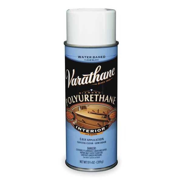 Polyurethane Spray, Base Type Water, Color Clear, Finish Gloss, Size 11.25 oz, Net Weight 11.25 oz, VOC Content Less Than 250 g/L, Coverage 20 to 25 sq ft, Exposure Conditions Interior, Dry Time 30 min, Application Temperature 55 to 90 Degrees F