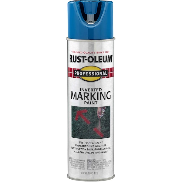 Create quick highlights for underground utilities, athletic fields, landscaping and more with Rust-Oleum Professional Inverted Marking Paint Spray. This aerosol coating is specifically packaged for use in an inverted position as a marking paint. It can also be used with the #2393000 Marking Wand to make large jobs less tedious. It features fast dry and adhesion to concrete, blacktop, gravel, soil, and grass.
