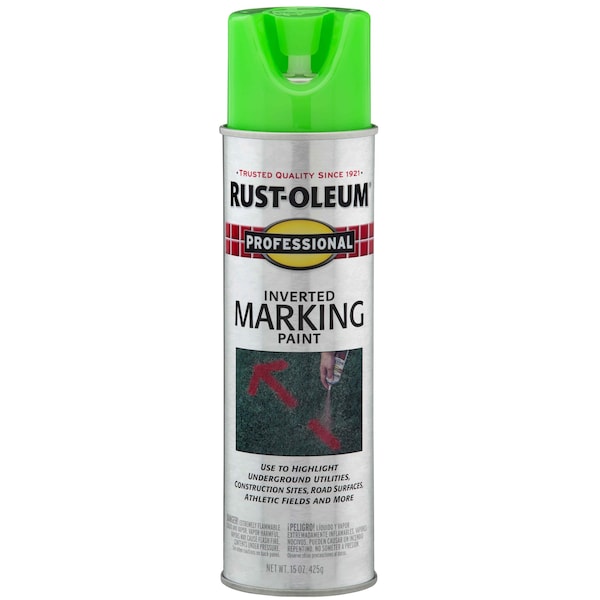 Create quick highlights for underground utilities, athletic fields, landscaping and more with Rust-Oleum Professional Inverted Marking Paint Spray. This aerosol coating is specifically packaged for use in an inverted position as a marking paint. It can also be used with the #2393000 Marking Wand to make large jobs less tedious. It features fast dry and adhesion to concrete, blacktop, gravel, soil, and grass.