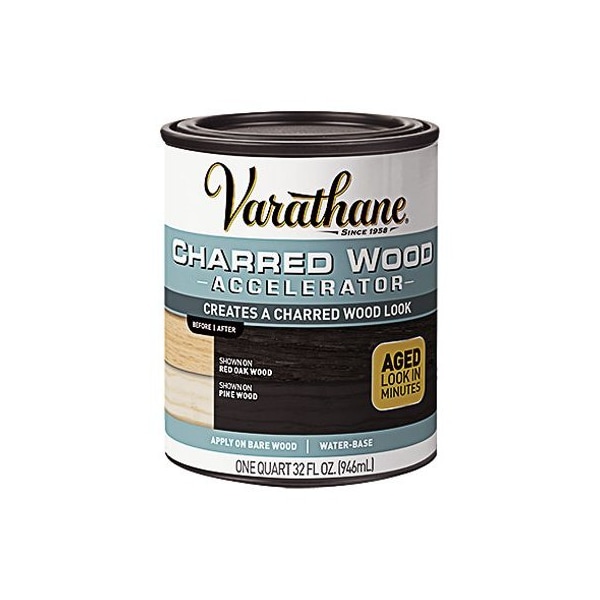 Varathane, QT, Charred Wood Accelerator, Interior, Creates A Charred Wood Look On All Types Of Bare Or Untreated Wood, It Replicates The Trendy Look Of Burnt Wood By Reacting With The Wood, Final Look Will Vary Based On Wood Type, Low Odor, Water Based For Easy Clean Up