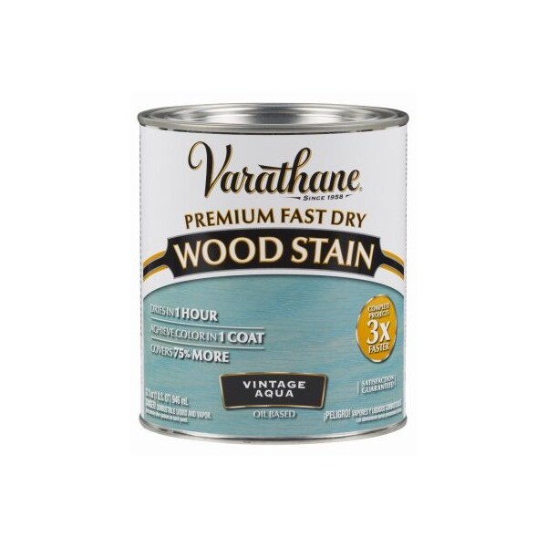 Varathane Fast Dry, QT, Vintage Aqua, Premium Oil Based Interior Wood Stain, 1 Coat Coverage, 1 Hour Dry Time, For All Interior Wood Including Furniture, Cabinets, Doors, Trim, Floors Paneling