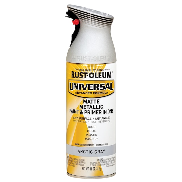 Rust-Oleum Universal Metallic Paint provides a classic look on virtually any surface. This paint and primer in one provides excellent coverage and a durable protective coat with maximum adhesion on even the most demanding substrates. The patented trigger nozzle also eliminates finger fatigue and protects against dripping from any angle.