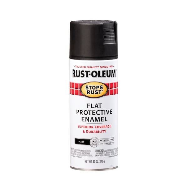 Spray Paint, Black, Flat, Solvent, 12 oz
