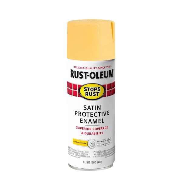 Stops Rust Spray Paint, Citrus Yellow Satin 12 Oz. Spray