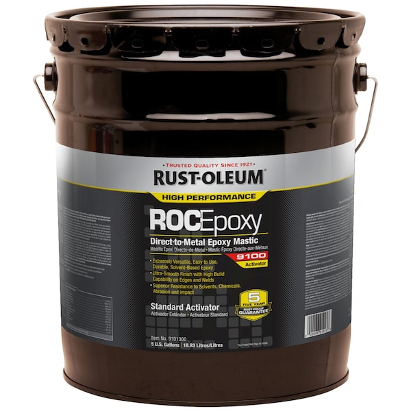 Standard Epoxy Coating Activator, Base Type Solvent, Resin Type Epoxy, Color Clear, Size 5 gal, VOC Content 250 g/L, Coverage 125 to 225 sq. ft./gal, Dry Time 6 to 12 hr, Cure Time 6 to 12 hr, For Use With 9100 Epoxy Mastic Coatings, Activator Properties Standard Activator, System Series 9100