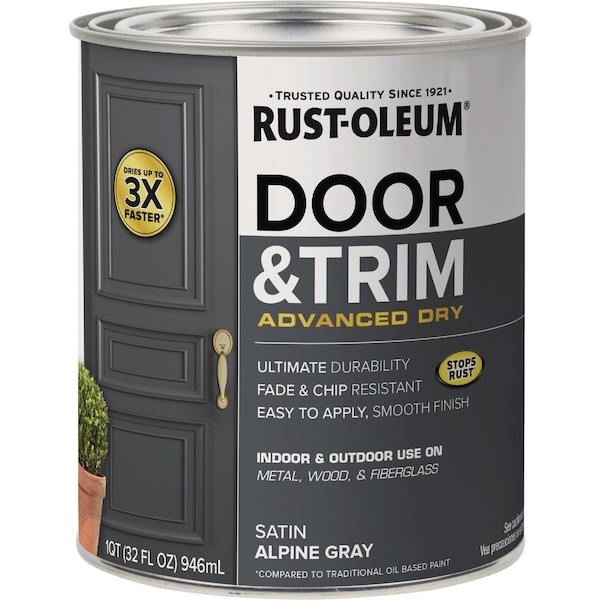 Rust-Oleum Stops Rust Door and Trim Paint is a fast drying durable formula that delivers a fresh new look to indoor/outdoor doors and trim. Fully dry in only 6 hours for faster project completion. Applies smoothly with brush or roller.