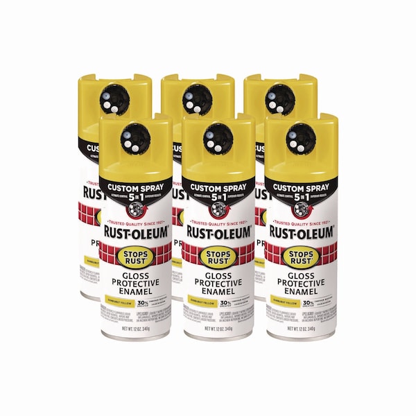 Stops Rust 5-in-1 Spray Paint, Gloss Sunburst Yellow, 12 oz Aerosol Can, 6PK