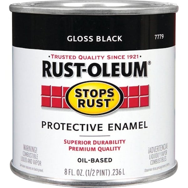 Stops Rust Enamel Paint, Oil, Gloss, Black, 0.5 pt, Can, 50 to 90 sq-ft/qt Coverage Area