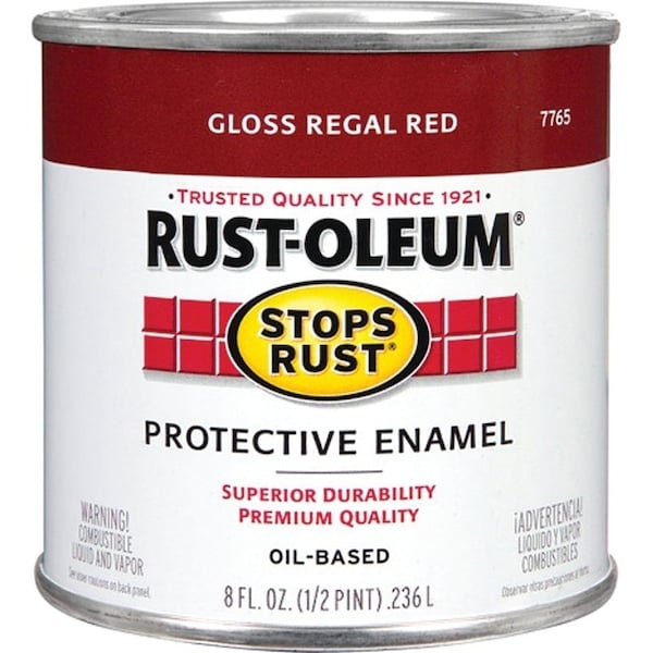 Stops Rust Enamel Paint, Oil, Gloss, Regal Red, 0.5 pt, Can, 50 to 90 sq-ft/qt Coverage Area