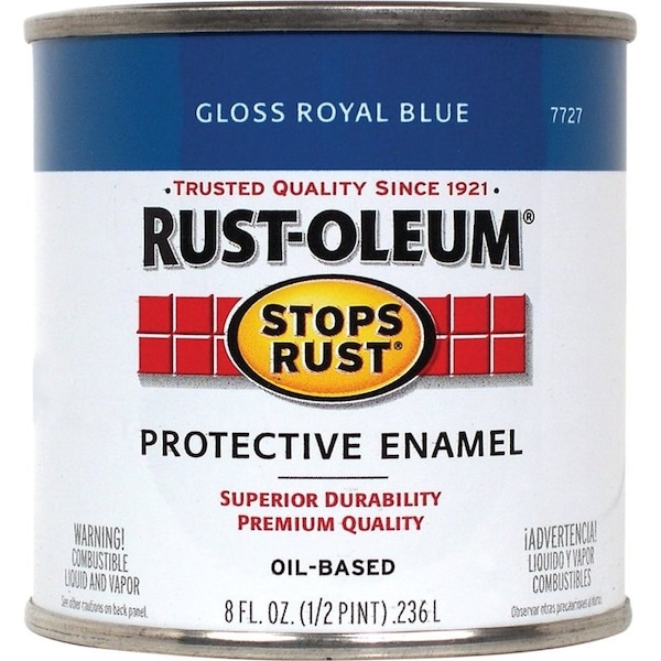 Stops Rust Enamel Paint, Oil, Gloss, Royal Blue, 0.5 pt, Can, 50 to 90 sq-ft/qt Coverage Area