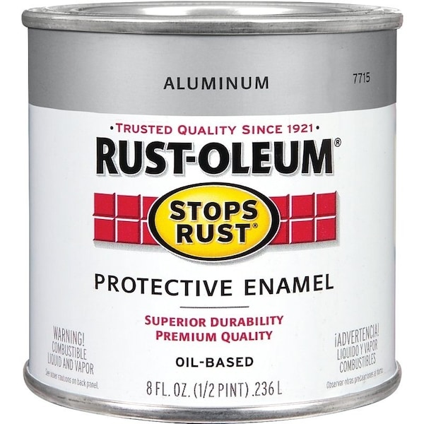 Stops Rust Enamel Paint, Oil, Metallic, Aluminum, 0.5 pt, Can, 80 to 120 sq-ft/qt Coverage Area