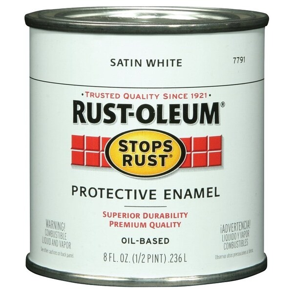 Stops Rust Enamel Paint, Oil, Satin, White, 0.5 pt, Can