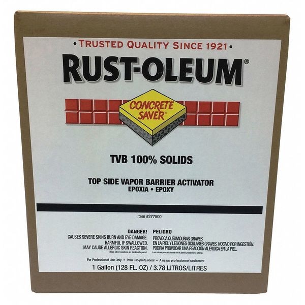 Activator Vapor Barrier Primer, Base Type Solvent, Resin Type Epoxy, Color Clear, Finish Flat, Size 1 gal, VOC Content VOC Free, Coverage 400 sq. ft., Exposure Conditions Mild to Moderate, Dry Time 12 hr, Cure Time 12 to 14 hr, Application Temperature 60 Degrees to 80 Degrees F, For Use With Epoxy or Polyurea Top Coat, 278269