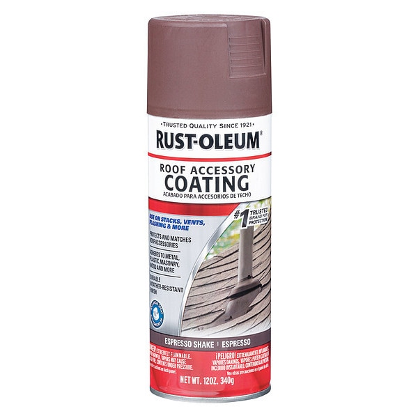 Weather Resistant Coating, Base Type Oil, Resin Type Modified Alkyd, Size 12 oz, Espresso Shake, Finish Unfinished, Coverage 10 to 12 sq ft/gal, Dry Time 20 min to 1 hr, Dry Time Recoat 1 to 48 hr, VOC Content 545 g/L, Surface Masonry, Metal, Plastic, Wood, Application Temperature 50 Degrees to 90 Degrees F, For Use With Flashing, Stacks, Vents