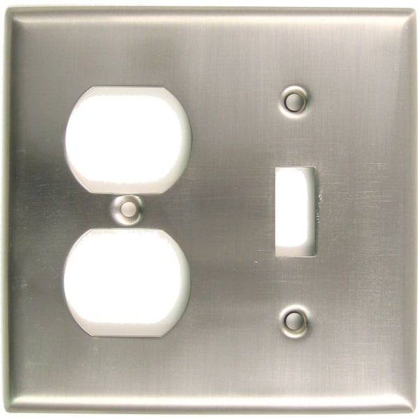 Double Switch/Receptacle Switch Plate, Number of Gangs: 2 Satin Nickel Finish