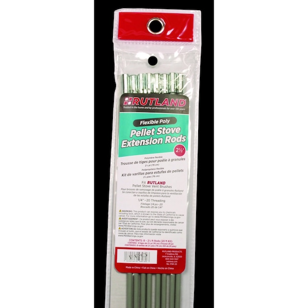 Poly rods designed to easily maneuver through 30 degrees and 45 degrees offsets, 0.250in diameter and 1/4-20 thread. Use with RUTLAND Chimney Sweep Pellet Stove Brushes.