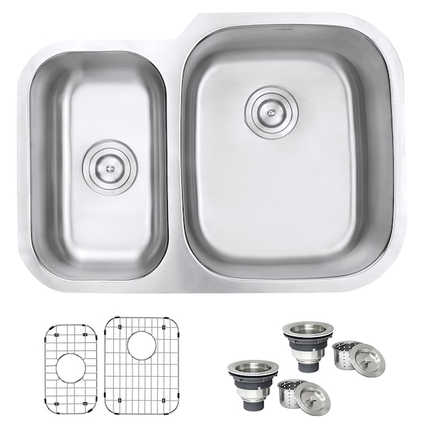 29" Undermount 40/60 Double Bowl 16 Gauge SS Kitchen Sink