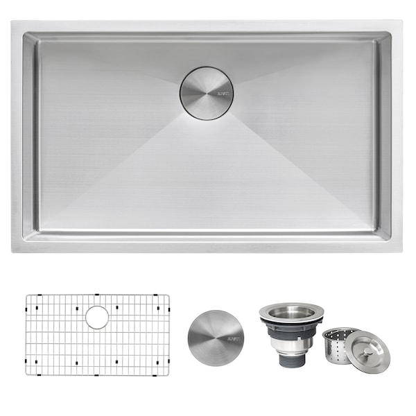 30" Undermount 16 Gauge Tight Radius Kitchen Sink SS Single Bowl