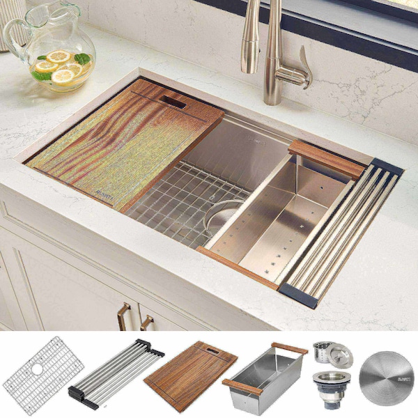 32" Workstation Ledge Undermount 16 Gauge SS Kitchen Sink Single Bowl