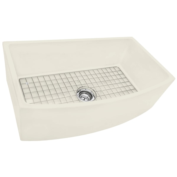33 inch Fireclay Biscuit Farmhouse Kitchen Sink Bow Front Curved Apron Single Bowl