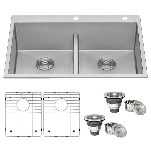 33"x22" Drop-in 50/50 Dbl Bowl Tight Radius 16 Ga SS Kitchen Sink