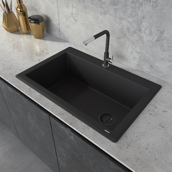 33"x22" Dual-Mnt Granite Composite Sgl Bowl Kitchen Sink, Blk