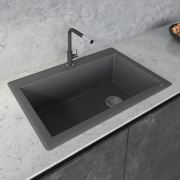 33"x22" Dual-Mnt Granite Composite Sgl Bowl Kitchen Sink, Urban Gray