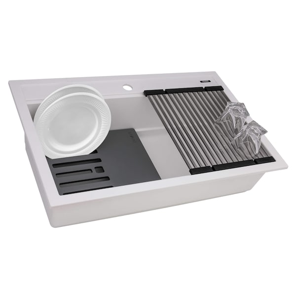 34-inch epiCube Granite Composite Workstation Drop-in Topmount Kitchen Sink Matte White