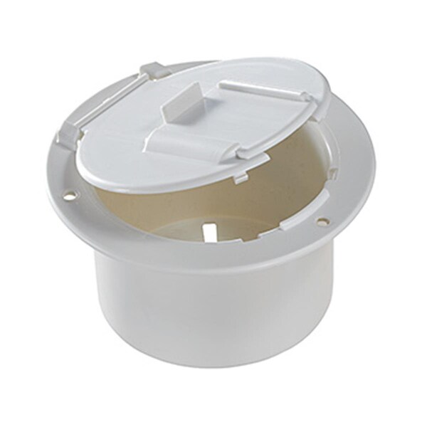 Features Low profile round hatch Low profile round electrical hatch with same hole pattern footprint as original equipment version Features replaceable lid that opens to full upright Specifications Color Polar White Material Plastic Dimension 7 8 x 6 9 x 1 2 in Weight 1 lbs