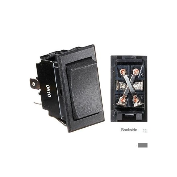 BLACK ROCKER SWITCH, 20A, 4 X TERMINAL, MOMENTARY ON/OFF/MOMENTARY ON. CUT-OUT 1