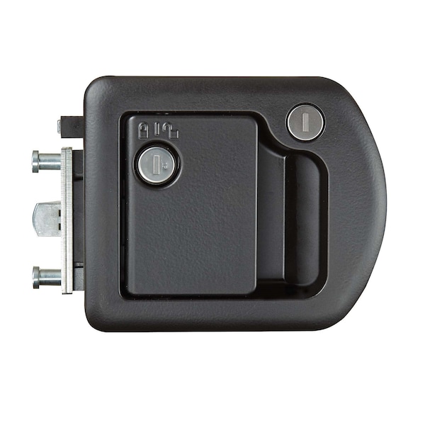 Paddle Style Handle For Fifth Wheel Trailers/ Pull Type Trailers And Slide-In Campers; Fits Door 1.39 Inch To 1.78 Inch Thick; Powder Coated; Black; Die Cast Zinc Alloy Housing And Steel Strike Plate; Built-In Dead Bolt Latch; Single