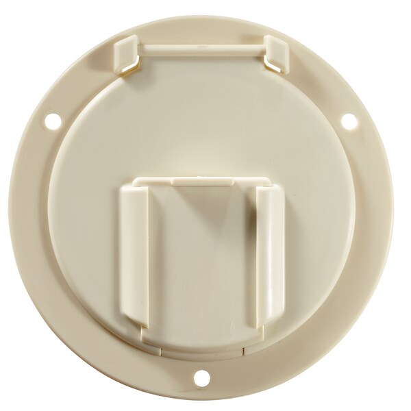 RV Designer B132 Round Low Profile Cable Hatch - Colonial White, 4.6" x 2.6"