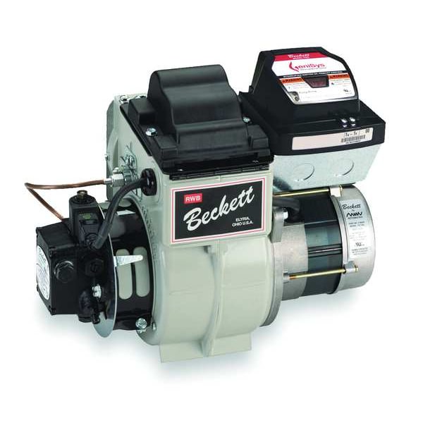 Product Type High-Efficiency Oil Burner, Voltage 120 V AC, Valve Type Integrated Solenoid, Includes Adjustable Mounting Flange, Assorted Heads And Static Plates, Low Fire Baffle, Overall Height 10 1/2 in, Overall Length 6 1/2 in, Overall Width 12 1/2 in, Pump Type Single Stage, Amperage 5.8 A, Burner Type Without Nozzle or Air Tube, Ignition Type Electronic, Model Number BR100GU, Motor Speed 3,450 RPM, Motor Type Manual Reset Overload Protection, NEMA 48 M-flange, Nozzle Thread Size 9/16-24