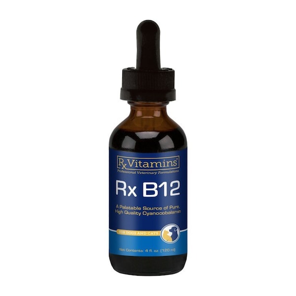 A Palatable Source of Pure, High Quality Cyanocobalamin - Vitamin B12 traditionally has been administered parenterally. It can be challenging for clients to bring their pets in monthly for these injections. Recent studies have found that daily oral administration of cyanocobalamin will just as effectively increase serum cobalamin levels as monthly injections. Rx B12 and Rx B12 Forte come in a highly palatable liquid format for easy and convenient oral administration of cyanocobalamin to your patients.Products are not always manufacturer specific. Actual product appearance may differ from website image.