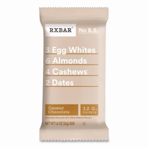 Get the simple, delicious pick-me-up you crave with RXBAR Protein Bars. Each bar contains 12 g of protein to help fuel your day. With a satisfying taste from a few carefully selected, real food ingredients, egg whites for protein, dates to bind, plus nuts for texture. There's no gluten or bad stuff, so picking the perfect protein snack just got a whole lot easier. Reach for an RXBAR Protein Bar any time you need an energy boost. Enjoy them at breakfast or lunch time. Make them your go-to protein snack when fueling up for workouts. Toss a protein bar in your work or travel bag for a convenient on-the-go bite. What you see is what you get with every RXBAR Protein Bar.